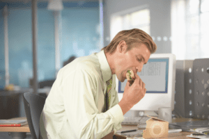 - podaj przykład sytuacji nie fajnych, a związanych z jedzeniem przy biurkach,